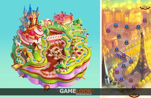 在很多游戏中,地图都是必不可少的元素,手游也是如此,她不仅可以承载大量的有趣内容,还可以作为主线故事介绍的载体,让玩家对于游戏游更加深入的了解。 最近,美术外包团队Novtilus公司CEO(黎君雪Li Junxue)在他的 博客 中分享了自己作为三消手游地图制作创意总监时所需要注意的几个点,以下是gamelook编译的内容。 最近,我的团队被加拿大开发商Play Puddle雇用为其三消游戏《Pastry Party》制作地图,我担任地图设计的创意总监。如你们所见,游戏的故事是一个小女孩在一个充满了糕点和糖果的世界里冒险,地图上的所有东西都应该用美味的食物来替代。 为了游戏首发,我们需要准备20个区域的地图,在此之后,我们每月需要增加6个新的区域。这份任务很具有挑战性,因为我们需要太多的区域,主题又不能重复每个区域都要有丰富的内容、有趣的外观、具有冒险性,而且最重要的是,应该吸引女性的注意力。 作为创意总监,我的工作是简单的,我在探索有趣外观的东西,然后把它们放到一起做成区域地图,我在一个文件里放入基本的想法和一些参考图片,然后交给艺术团队,他们做真正的设计。虽然我并不参与实际的构图,但我发现对于最终产品的影响是很明显的,如果我想了很多而且做了一个不错的文档,地图看起来就会很丰富而且布局很好;相反,如果我的文档做的比较松散,效果就会是相反的。 以下我来分享如何做这份工作的几个点: 思考哪些是有用的对我们的游戏来说关卡节点大小是一定的,在手游里相对比较大,这可以给手游用户一个比较好的体验: