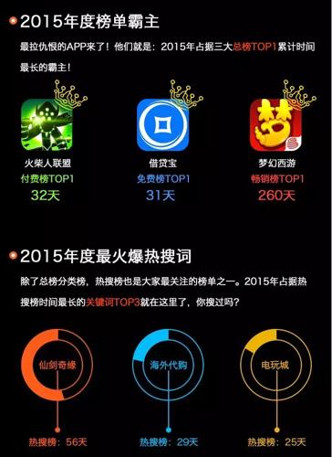 1月19日,数据分析平台ASO100发布了App Store 2015年度数据盘点(中国区)报告。报告指出,2015年中国约有17万开发者上传了新App,新增约47.6万新应用,其中约有14.4万为游戏应用。2015年App Store危机公关研究策略总收入超过200亿美元,创下历史新高。游戏是其中最具实力的分类,免费榜TOP150中,有789款游戏成功挤入,占比达39%。而论2015好用小程序年的霸榜高手,《梦幻西游》首当其冲,其2015年在App Store畅快手热门技巧销榜TOP1霸榜260天,成为最大的赢家。(ASO100)