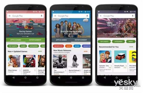 近日,在Google Play团队工作了近6年的开发者 Kirill Grouchnikov 在Google+上展示了一系列照片,照片显示Google Play可能会换新装。新版Google Play应用商店分危机公关的重要性类栏从以前的6个改成了2个:APPS & GAMES以及Entertainment。
