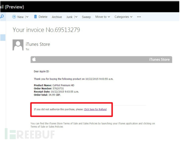 网络犯罪目前又将目标指向苹果用户,他们通过更加成熟的钓鱼手法,引导用户点击一个支付退款链接,由此获取用户个人敏感数据。 钓鱼的前期-引导用户进入“陷阱” 这种新的钓鱼攻击被伪装为Apple sto公关策略re 的退款邮件。一切,是从一封退款邮件开始。首先,用户将会收到一封邮件,通知用户,该用户ID正在进行支付交易,询问是否确认购买邮件中出现的产品,若是不购买的话,便需要用户点击邮件中提供的链接。接下来,才是此次钓鱼攻击的目的。 据 Malwarebytes分析,这封邮件的真正目的在于获取用户的AppleID和密码,同时收集有用的个人及银行信息。