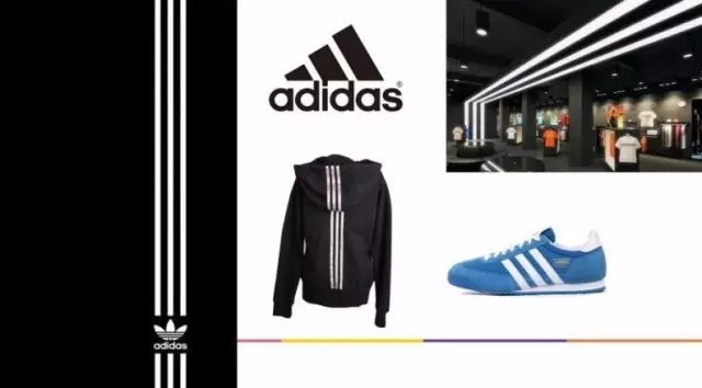 ![]() 2、阿迪达斯的三条杠符号,会运用到实体店、产品和广告,即使在很远的地方没有看到logo,但看到这三条杠也会知道是阿迪达斯品牌,这也是特设符号的核心。