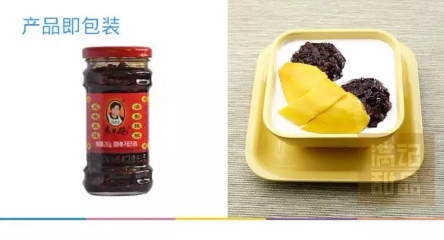 ![]() 京东、天猫、苏宁和国美,他们的识别可以理解为是一个标志logo,但是核心是就是用了一个虚拟的代言,代表的品牌的个性和优势。这些也是根据公司平台、品牌定位以及细分对手来考虑的 七、包装 包装是品牌符号的综合表现,是与同行形成差异,要让包装成为第一宣传媒体。或者说,包装本身就是一个很好的广告。 1、 产品即包装 产品本身就是一个包装,比如老干妈的形象,它的形象和造型沿用至今已经成为它独有的符号,即使其他品牌用这样的造型,我们还是会先想到老干妈。满记甜品的碗碟设计也都是他的专属识别。