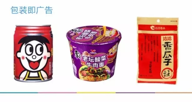 ![]() 还有像旺仔牛奶、恰恰瓜子和老坛酸菜,他们的包装本身就包含了很多符号,比如瓶型、卡通形象、色彩搭配已经形成了一个专属个性,其他品牌按照这个策略去走肯定是不行的,还是需要有自己的特点,塑造自己的一个个性让更多消费者记忆和认知,就会慢慢形成自己的一个品牌符号。
