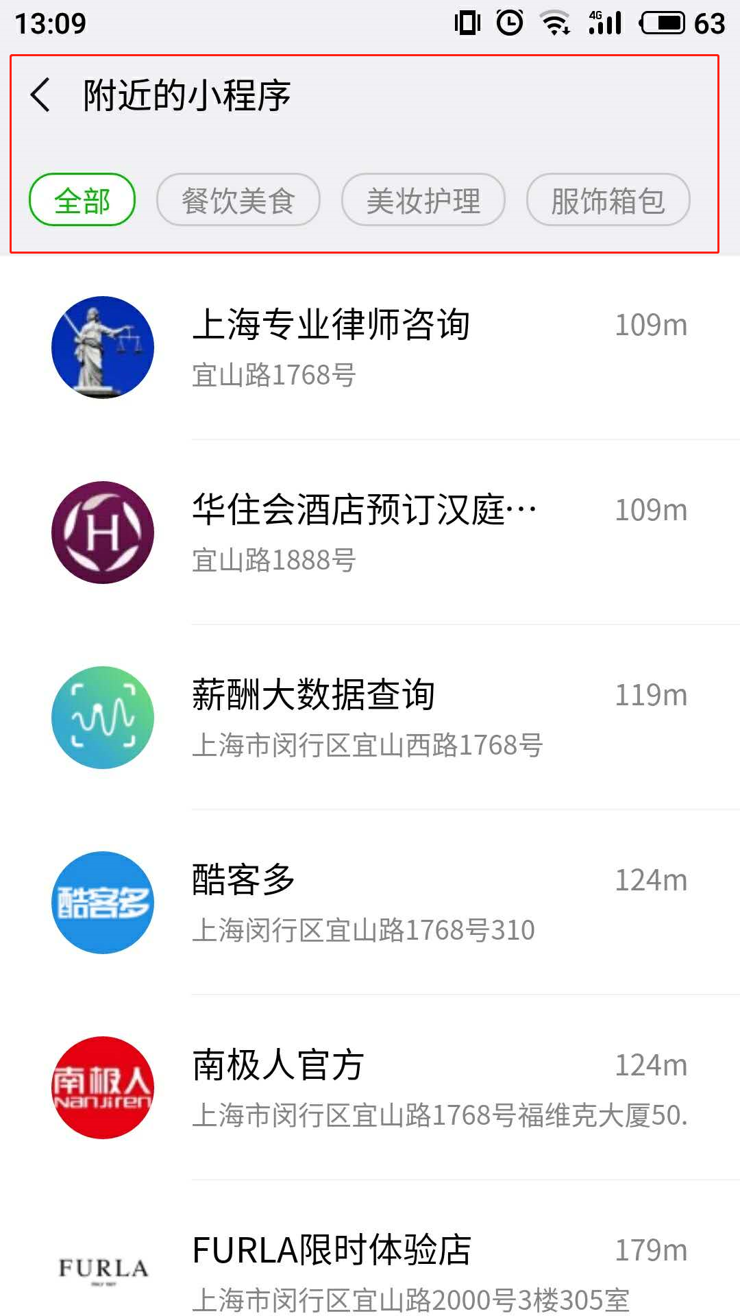 2、打通线上线下场景 线上流量争夺进入到白热化的阶段,而线下却有非常大的空间和潜力。因此,利用小程序打通线上和线下渠道,对于实体店运营者来说,可以为线下门店引流,能够有效将流量变现。在“附近的小程序”里,有餐饮美食、美妆护理、生鲜果蔬、服饰箱包四个分类,用户能看到周边门店的地址和相关信息。