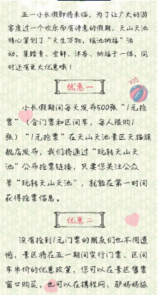 定向层面,大量的数据交叉虽然能提高精准度,但同样会过滤掉大批用户。因此,仅对基础定向进行设置:地域选择新疆及周边省市,年龄选择20-35岁。 广告素材精心设计 准确抓住用户心理 “周边游”特点鲜明,用户更加关注旅游路线和性价比,一个小小的细节可能就会影响用户决策。 “新疆天池”与爱奇艺均具有强烈的娱乐属性,广告素材及落地页在视觉风格上力求高度匹配,主打欢快、青春风格。细节虽小,却能够引导用户在面对娱乐类型消费时做出更积极的决策。 文案方面,同样需要对用户进行决策引导,突出价格优势。例如:新年大回馈,门票一元GO!。 落地页作为广告素材的承接,在内容设计上需要突出两点: 第一,价格及优惠信息。许多用户在进行出游决策时首先考虑的便是价格,落地页设计上也要考虑到这一点。