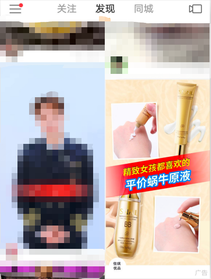 很多女生喜欢用蜗牛原液的护肤品,蜗牛原液就是蜗牛的分泌物啦,蜗牛原液可以避免皮肤老话,消除皮肤的斑点、疤痕,也就是说有很好的修复功能同时还能增加皮肤弹性为你的皮肤补充营养。 总之有很多功效,小编就不一一嘟囔了,有一点特别明显的特征就是明星红人很多人都在用,曾经还是《美丽俏佳人》力荐产品,这次再看到蜗牛原液就不一样了,因为这次蜗牛原液投放了,一次来增加产品销量。 广告外层展示产品图以及使用产品的图片,有BB等多种不同的产品,文案“精致女孩都喜欢的评价蜗牛原液”,以此来吸引女生以及潜在用户的注意力。
