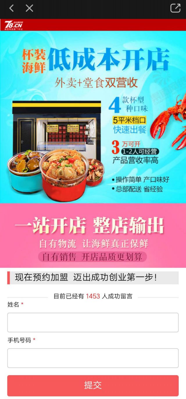 落地页展示用户更多关心的问题,例如:成本费用、产品口味、店铺面积、经营、物料任子行舆情等,这些在落地页上面的海报上都有为用户解答,用户不仅可以在食堂开店也可以在食堂经营的同时做十大电商代运营服务商外卖,落地页的下方是表单,可以用来收集客户资料,用户议案写资料提交之后广告主就可以收集到一箱用户的信息进行下一步的跟踪转化,但是用户一般对隐私方面的问题有一定的警惕性,所以广告主在表单的上面增加已有多少位用户成功留言的信息,成功留言的用户用数字表达,并且用了不同颜色的字体吸引用户的注意,这种方式可以消除用户的防备和警惕的心理,提高表单提交率。