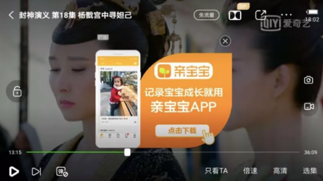 关键词:亲宝宝,爱奇艺广告,贴片广