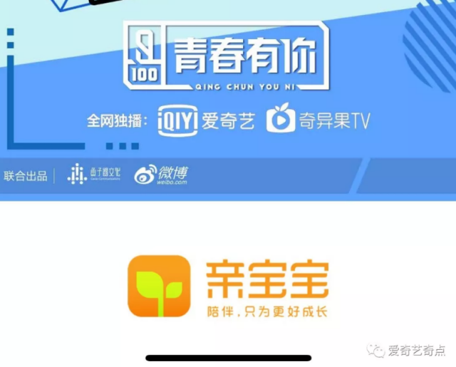 除了TOP5剧场和热门剧目的广告投放之外,亲宝宝APP自身的媒体属性也不可小觑,与爱奇艺多部热门综艺进行联合宣推。前段时间合作了爱奇艺青春成长类头部综艺《青春有你》,共同见证训练生们的暴风式成长,点赞他们的梦想与勇气。