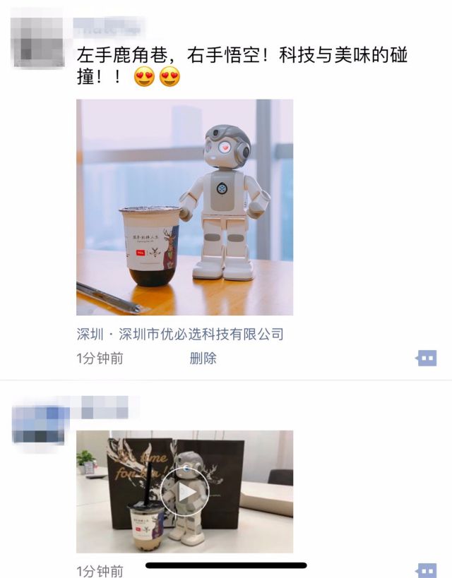 IP变CP,奶茶有惊喜 两家大IP合作,势必会引起业内人士的广泛关注,TCLCCTV-3电视与鹿角巷推广店面活动的第二天,科技圈互联网大佬朋友圈就流出了号称“广告勿扰,不发广告”的票圈分享页面,腾讯、大疆、华为、优必选等朋友圈皆被覆盖,不仅如此,优必选还晒出了自家的品牌信息,随手就是一个广告大片,紧接着品牌还顺势做了一次微博联动,这波C位出道的操作不得不说是一个清新自然又带点互联网骚气的走位。外模小姐姐配送奶茶的高位模式,把奶茶的调性也顺势提升,在抖音等平台上引发热门讨论,而在微信这个“私人社交”平台上面,圈内人每一个随手分享,都会引起业界大佬们的关注,他们有着鹿一样的敏锐嗅觉,为了提升事件热度,TCL电视干脆携鹿角巷来一次扩大“奶茶进园区”的下午茶活动,也因此有了后来“奶茶反击电视”的二次营销传播事件,让许多网友纷纷表示品牌真是优秀。