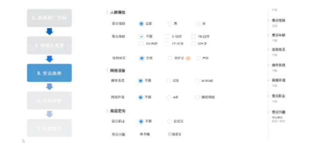 3.设置准确的广告定向。投放广告之前,要根据自身产品划分人群特点,要多维度考虑。这样有助于广告推荐给目标用户,可以带来更多的点击率。