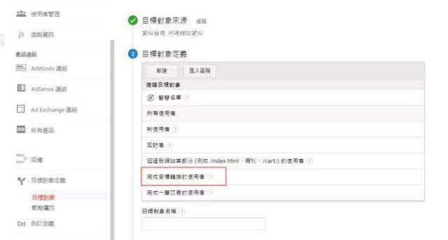 2、细分你的转化用户 网站一般都会有一个转化目标,例如说付款,下单,注册,填写表格,打电话等等。如果你的网站并没有设置一个具体的转化目标,建议先设置好,然后再进行下一步。 你可以创建一个已完成转化的细分,例如说成功付款。然后在设置定位的时候,可以选择看过破碎机的用户,并排除掉已完成转化的用户。通过排除的设置,你可以将你的广告展示给那些对破碎机感兴趣,但又还没购买的潜在客户。特别是你的目标是拉新的话,排除掉已下单用户是很有必要的哦~