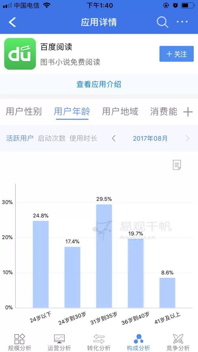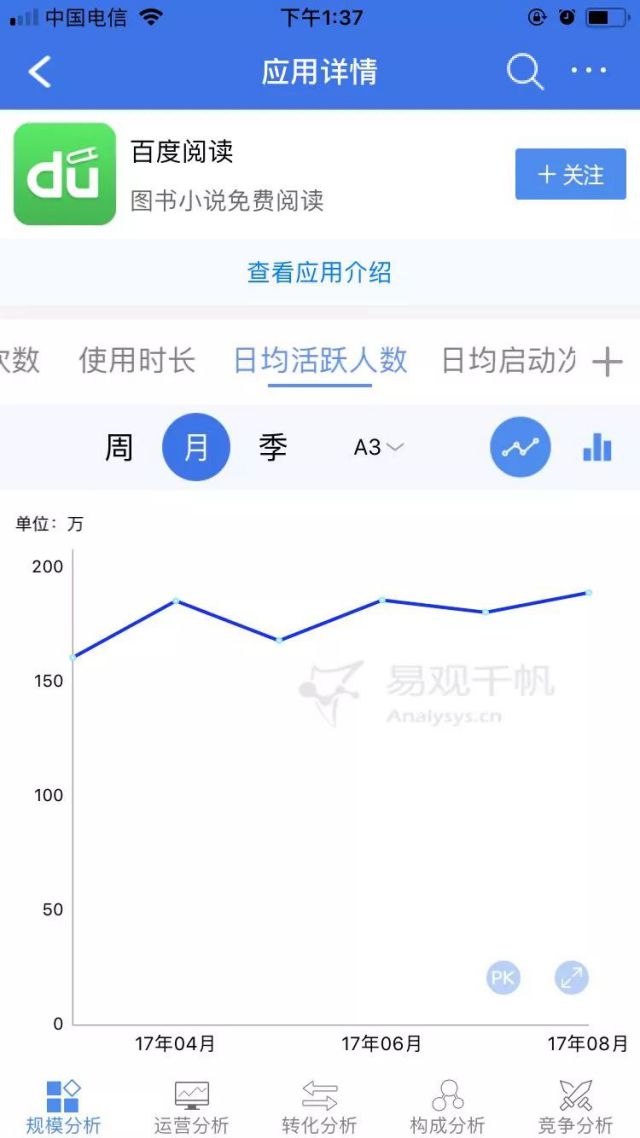 本文旨在通过对及百度阅读分析对比,通过对生命周期、业务逻辑、用户运营策略等多维度进行分析,尝试对阅读软件进行分析,不足之处,欢迎探讨。知识焦虑成为当下的热门话题,人们为了缓解焦虑,开始通过听书、学习网络课程、订阅自媒体公号等多种渠道补充知识。每天听本书、公众号推文在一定程度上缓解了人们的焦虑症。但如果营销是怎么一种营销要获得系统性、有质量的知识体系,阅读仍是不能被替代的。阅读相比公众号等碎片化阅读,对时间的要求更严格,需要用户花费大块的时间来进行系统的学习。但游戏、直播等APP的暴涨,用户精力被分散。 在这样的大环境下,如何吸引用户的注意力,让用户形成长期稳定的读书习惯,并能获得知识的收获感,是对阅读类APP从产品设计到运营的一大考验。 本文将从以下几点进行分析: 1.行业背景 2.百度阅读产品分析 3.百度阅读运营分析 截止到2017年12月底,数字阅读独立APP行业月活跃用户规模增至2.53亿人,其行业渗透率约为23.4%,低于移动音乐、在线视频、游戏等行业。