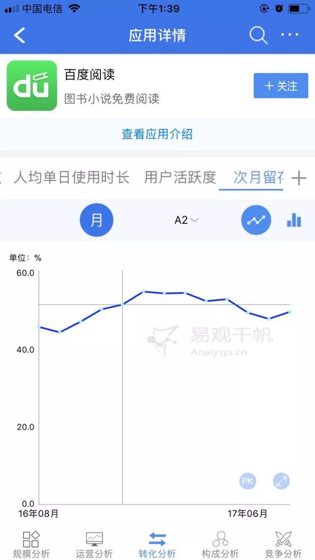 用户生命周期 百度阅读2014年上线,经历几年的精进打磨,逐步长成为一款较成熟的阅读工具产品。从下载量来看,百度阅读下载量逐步放缓,产品进入成熟阶段,需从产品设计、用户运营上精耕细作,以提升竞争力,实现变现增收。
