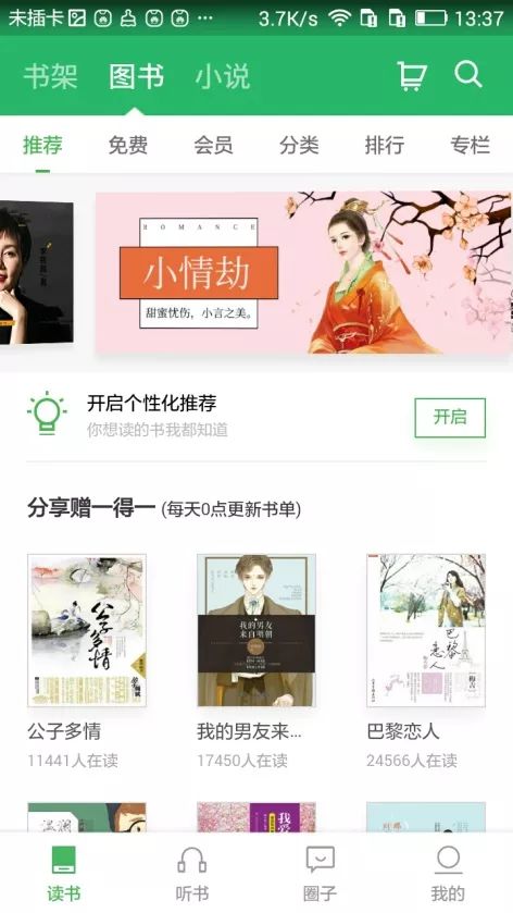 会员免费书籍涵盖技能进阶、社科文学、青春言情等多种品类畅销书籍,人群覆盖面广,库存质量无需多言。 会员收入=购买人数*客单价,购买人数=总用户数*会员转化率 总人数主公关公司排行要取决于平台现有用户及拉新能力,会员权益设置、landingpage页的设计都会影响到转化率;客单价主要由购买的会员来区分,整年购买均摊到单月之后,一定是更具有吸引力的价格,在百度会员的定价中可以看出; 在此对百度阅读的会员制度发表一些看法:在17年百度会员是可以用积分兑换的,大概1个月是500积分左右,但后期下线了该兑换制度。转而改为会员用户全部付费获取。 但个人认为,不妨对此做一个小调整,如:用户首次可以用积分兑换一个月的会员权益,或免费享用15天,每人只可享受一次权益,当用户对于会员的体系及利益有所体验之后,能更好的促进用户购买。另外,对于用户而言,6个月及12月都属于长时间购买,用户很有可能在付费之后就松懈了,不能有效提升活跃度。如果增加一个连续付费梯级,比如12元/月,采用自动续费模式,用户首次性支出较少,更利于尝试及购买。同时,自动续费比单月购买,更有利于提升二次购买转化率;用户权益时刻处于一种月后到期的氛围中,对提升用户活跃度也有一定帮助。 传播:百度阅读平台内部主要通过老用户关系链进行传播,除常规的阅历分享外,还有两大主要活动。主要为每日阅读分享,展示体现阅读质量的翻页数、阅读时长及连续阅读天数数据,并从自身、平台用户占比等维度进行突显: (1) “分享赠一得一”活动:老用户分享一本书到朋友圈,新用户可以通过下载APP领取书籍,老用户也可以同时获得该书;活动呈现在书城板块的轮播下方,位置明显。 “分享增一得一”活动对于用户刺激性较高,分享之后用户还能看到“明日书单预告”
