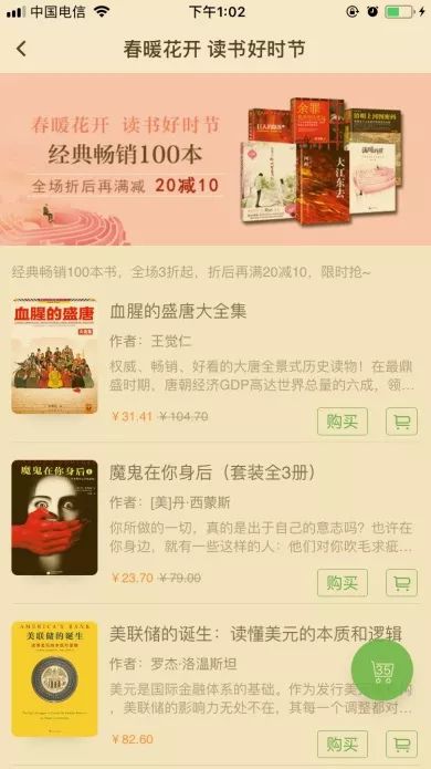 老用户的运营主要是用户活跃度提升、变现以及流失用户的召回。留存,目前重点关注于用户打开频率、用户阅读时长及用户互动方面。 针对用户打开频率,产品设计上留存手段主要有签到兑换积分、活动信息及书籍推荐push,其中签到每次赠送5积分,连续签到7天可抽奖;针对用户阅读时长,产品设计上包括阅读时长兑换代金券(每60分钟=1元,每周最高10元)、阅读超30分钟送5积分,积分可以兑换代金券,代金券可以购买小于该面额价格的书籍,以此来增强用户的主动性。每周兑换的代金券有效期为7天,利用损失厌恶心理,督促用户及时购买,形成新的书籍粘性。为增加用户阅读活跃度,百度阅读在运营上进行了一系列的操作。 (1)开展促销活动,通过特价、新书上线、热播剧同步书籍等活动,吸引用户关注、购买,并提升阅读活跃度。如《三生三世十里桃花》电视剧热播的时候,上线《三生三世枕上书》等相关书籍。 百度阅读促销活动,经常会有一些特价书籍放出,质量高、价格低,有很好的用户粘着力。免费书籍量也较大。如果是阅读常见小说如文学名著,大部分在10元以内,通过签到、阅读时长换取代金券即可购买,对于付费支付的需求不大。