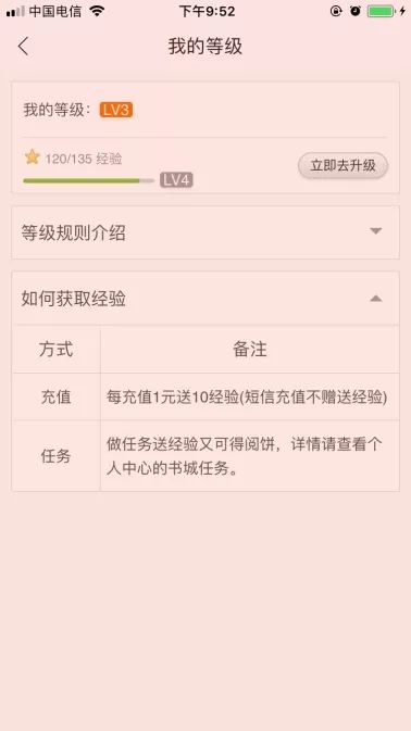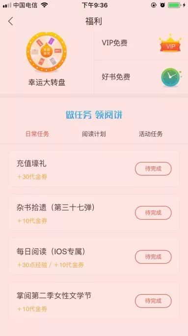 从当前的运营来看,存在以下几点不足: (1)代金券过期无提醒,用户不能及时将代金券转变成书籍,以形成新的吸引力; 1.消息通知:消息推送内容集中于促销信息、书籍推荐,从目前推荐内容来看,未能对用户进行分群,针对性不够强。收到的Push消息中约有约半数为本人无兴趣的内容,且push较频繁。建议加强对用户的分群管理,避免无效的push引发用户的反感情绪。 2.目前用户留存仍集中于签到、积分等手段,不能对不同用户进行精细化管理,无法根据用户的不同特性进行针对性的活动推送及分级引导,影响用户增长、平台忠诚度提升以及商业变现。而竞对掌阅建立了相对完善的会员体制,根据会员等级,享有不同的福利及特权,如下图。