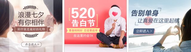临近5月有两个比较受关注的节日,“五一”小长假和“520”,尤其是婚恋广告行业对这两个节日更为敏感。婚恋广告行业在前些年的时候尚且不算是一个热门的行业,很多企业不知道如何合理地去推广,老牌企业垄断了客户。年轻的品牌又无法打开知名度,不仅在本地的竞争力不够,也不知道在网络上如何去分一杯羹。 随着网络的技术逐渐进步,近些年大量的新品牌婚纱摄影店开始运用 互联网广告去争夺客户,打破了老牌企业垄断客户的格局。那么,在行业竞争越来越激烈的今天,如何才能推出一则吸引人的广告,让自己的品牌和产品于用户成功“吸睛”,就成了提高转化率的关键问题。 今天分享的“婚恋行业广告秘籍”将通过对 图片素材、文案内容、画面色彩、布局结构四个方面进行的“排兵布阵”! 秘籍1:图片选择注重细节 1、婚恋交友类 • 使用真实的人物图片,感染力强,更易引起用户注意,拉近与用户之间的距离。