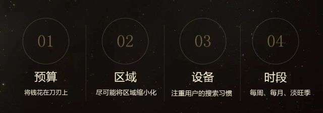 1、操作方向精细化 方向不对,努力白费。而“投放方向”也是家居家装行业整个推广效果的关键! 一般情况下,我们可从以下四个维度对投放方向进行精细化操作。 a.预算 竞价是花钱买流量,那首先我们就要让钱花在刀刃上。即对预算进行精细化处理。(具体预算分配会在下面讲述) b.区域 将区域范围尽可能地进行缩小化。 c.设备 根据用户的搜索习惯、职业情况等,进行明确的设备分配。 比如白天上班,可能PC使用时间较长;晚上下班,会倾向于手机的便利化。 d.时段 时段精细化,不仅仅只是每天的预算分配。 更要结合每周、每月、淡旺季,以此对预算和流量进行精细化分配。 2、流量精细化 在精细化投放中,也要注重对流量的筛选,只要这样才能尽可能地减少预算的浪费。 而对于流量的控制,我们可以从以下几点来出发。