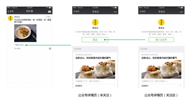 小编向西安和大家一起看个案例,上图是一个美食类的微信公众号的推广,大家看完这个案例以后,会获得这些信息: 1、广告主是“美食台”。 2、广告的外层文案是“可以自己买新鲜海胆,做一份意面,吃一整盘都不会腻”。 3、外层图片是“一张垂涎欲滴的意面图片”。 4、用户点击“查看详情”以后,会进入到美食台的微信公众号关注页面,如果用户还未关注公众号,在关注下方,会给用户推荐一些用户可能感兴趣的内容,如果用户已经关注了微信公众引流营销推广号,就会提示用户可以直接进入微信公众号,下方依然会有微信公众号的精选推荐内容。 5、广告和用户可以产生互动,如点赞、评论等。 在平时,在朋友圈看到的公众号推广的比较少见,但也不是没有,如果各位广告主想要在微信微信公众号/服务号,可以找我们上海,跟我们合作以后,我们还能够帮您搭建广告账户以及广告创意素材的优化哟~