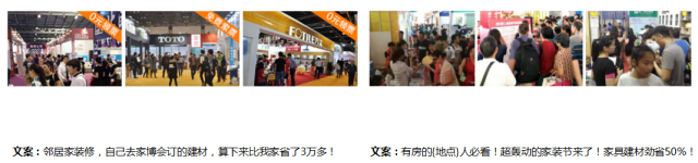 五月初夏,每逢5月必有好心情,5月也有很多值得关注的节日比如5.20情人节,如果非要说5月是个什么季?小编只能说5月是个活动季。每年初夏,各类活动就开始筹备了,每个人都沉浸在忙碌之中,一场活动不仅仅需要筹备,还需要做网络推广,那么一场大型的什么是营销活动会展活动在今日头条上应该怎么做推广呢? 一场大型的会展活动,推广目的一般有二:一是能够吸引更多的用户知道并参与活动,搜集客户信息,第二则是让用户对品牌有所认知。 会展活动的目标人群画像: 参与如家博会的大型会展的用户年龄段主要为85后-90后(24-45岁之间),他们已经有独立的经济能力,也占据绝大部分的主导权,并且他们也愿意为了自己的舒适生活付费。85后90后跟70后80后不同的是,85后90后更注重生活的品质,所以可以针对痛点设计创意文案,也可以更好的把广告推送给有价值的用户。 举个例子,以下是小编收集到的关于家博会创意文案: 门票快递类文案