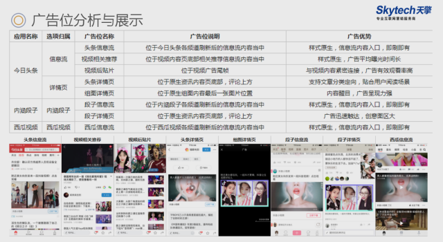 今日头条广告投放策略: 1、准备工作 确定目标人群的画像,找到潜在的客户人群,推广形式为一个落地页,用户点击广告以后会直接跳转落地页,可以搜集到客户信息。需要根据不同的广告素材来撰写不同的素材文案,最后还需要设置转化跟踪,进行安装落地页JS代码,这样会有利于做o转化。 2、搭建广告账户 可以对地域设置为广告主危机情况处理所在城市,设置最合适的出价方式oCPC/CPC/CPA,还需要针对不同的素材风格进行设置,并对目标人群的兴趣进行分类、区隔化的投放,以及对目标人群使用的APP类定向/竞品类定向。 3、广告上线 准备工作和广告账户的工作内容均已完成,我们就可以开始让广告开始测试阶段,然后正式投放。 4、投放优化 广告上线以后,还需要广告优化师根据广告的数据情况,以及广告的曝光量和点击率来对广告素材进行微调,再根据后端的广告转化数据来进行及时的优化,真正的做到网络营销课低成本计划放量转化。 无论是在上推广什么产品/服务还是推广大型的会展活动,都需要记住以下几点内容: 1、素材创意是基础 只有对素材创意不断的优化和测试,才能保证广告有高的点击率,这样也才更容易让用户产生共鸣。 2、落地页的转化 落地页需要跟广告产品/服务和会展活动有内容相关度,落地页和产品/服务/活动的完美衔接,才能吸引用户转化。 3、人群的定向 进行多角度的测试定向,找到对的人呢,做到精准人群,这样也可以做到提高转化。 另外,广告创意素材每周都至少需要更新30套~ 接下来,就是今日头条的广告资源的分析和展示,也可以为想要在今日头条上投放广告的广告主选择广告资源做个参考!