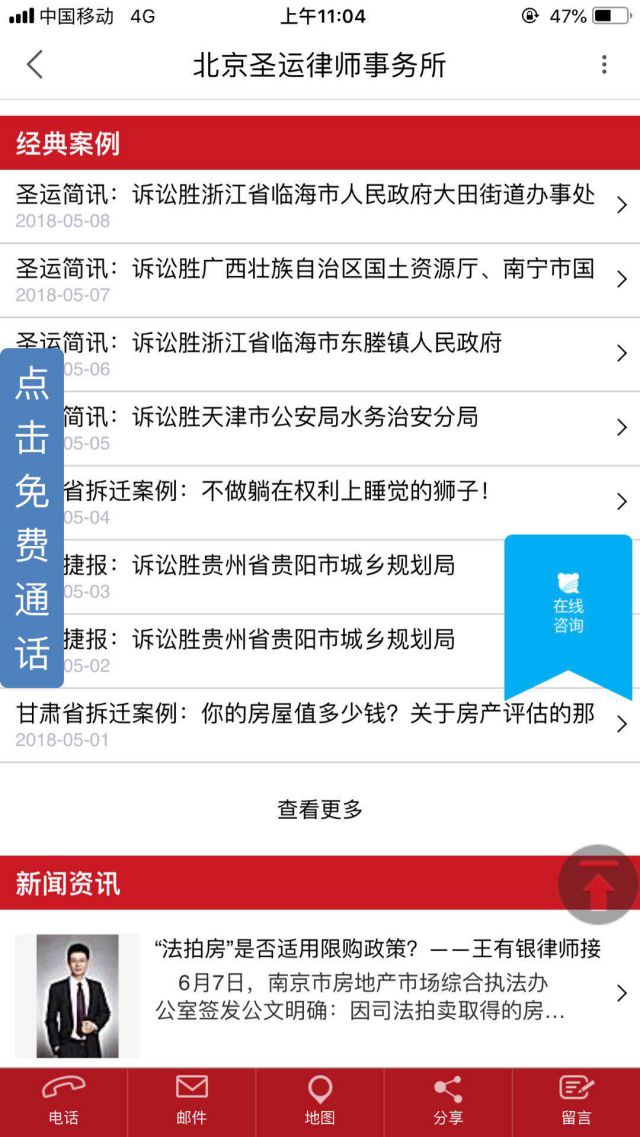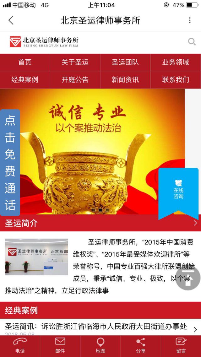 二、落地页设计风格需严谨 这一类广告风格必须严谨,同时落地页可直接连接到公司自有网站中,直接将过往经典案例以及公司简介展现给用户,以此来吸引用户的信任感。圣远律师所就是通过这样的方式来吸引用户,增强用户信任感。