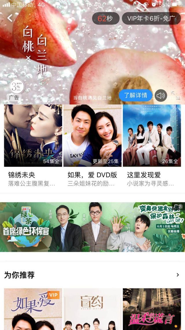 统一绿茶选择的是优酷视频的页面banner广告,不仅广告效果优质,而且广告位置明显,优酷用户点击率高,对于后续的广告转化效果也很好。对于广告主来说可以实现性价比超高的广告投放。 统一绿茶的页面banner选择的是张丹峰等名人代言,可以有效的吸引用户注意并且产生点击量。