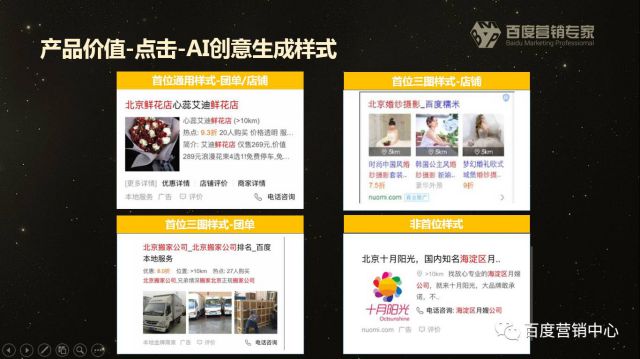 凤巢本地化产品——本地直通车是基于AI智能挖掘流量,以糯米旺铺落地页赋能促进转化,达成商户营销目的一款产品。
