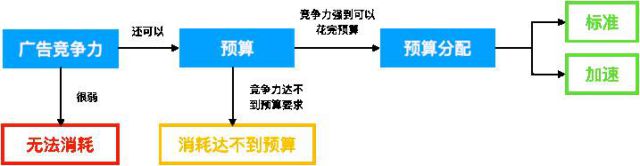 标准投放究竟是怎么样一个预算分配方式?和加速投放又有着什么样的区别?为什么我们会将标准投放作为平台默认推荐的投放方式?正确使用标准投放的姿势有哪些?作为负责这部分产品变迁的产品经理,我会为大家分享这一系列改动背后,我们对于预算分配和投放效果之间的一些思考。 广告竞争力、预算、预算分配和消耗的关系 明确一个概念:”标准投放“、”加速投放“本质上都只是预算分配的一种方式,并不会影响广告计划的消耗多少,后者更多受广告竞争力和预算设置的影响。而广告竞争力、预算和预算分配方式三者和消耗的关系可以简单描述为: 1、广告竞争力(创意、出价和定向等)决定了计划是否能消耗及消耗的上限。 2、预算设置的大小和广告竞争力共同决定了实际消耗的多少。 3、当竞争力足够花完广告主设置的预算后,预算分配方式决定了我们如何分配预算,也就是消耗的速度,而这通常会导致投放效果的明显差异。 三者按照下图的逻辑来影响投放系统: