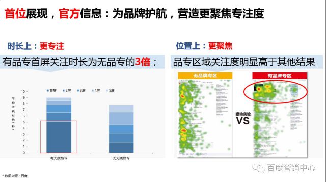 上图是无线端品牌关注时长和关注度的数据,从数据中得到,有品牌专区的首屏关注时间是没有品牌专区的三倍,品专区域的关注度以及点击明显高于其他区域。