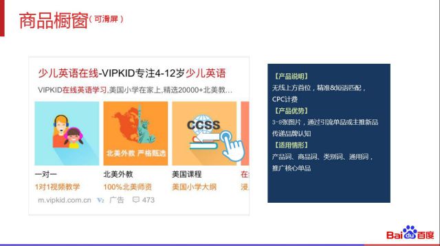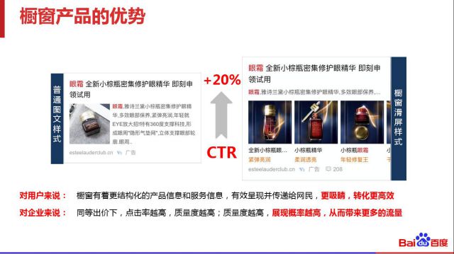 小提示:您应该对本页介绍的“百度推广橱窗产品升级,让点击率提升20%”相关内容感兴趣,若您有相关需求欢迎拨打我们的服务热线或留言咨询,我们尽快与您联系沟通百度推广橱窗产品升级,让点击率提升20%的相关事宜。