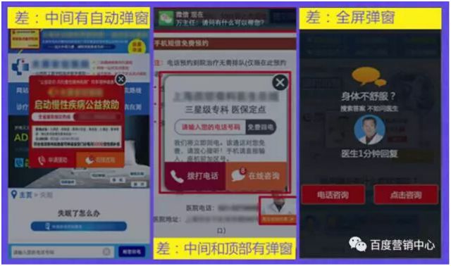 小提示:您应该对本页介绍的“百度移动落地页质量提升之“自动弹窗与违规浮”相关内容感兴趣,若您有相关需求欢迎拨打我们的服务热线或留言咨询,我们尽快与您联系沟通百度移动落地页质量提升之“自动弹窗与违规浮的相关事宜。