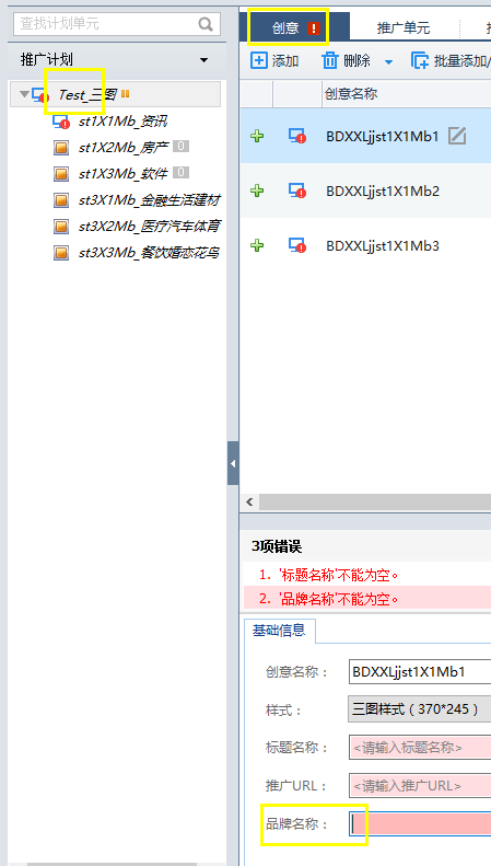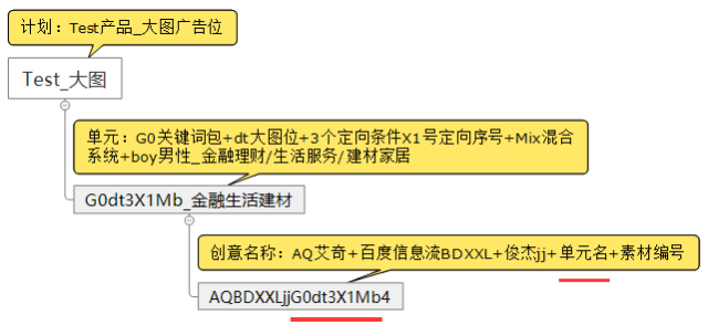 [导入备份] 注:beb文件包含一个计划,下有三个单兴趣单元三个三兴趣单元,只有一个单元下有三条创意模板,默认投放手百流量。 1.命名逻辑 ① 计划舆情评论名:产品_广告位 【eg.Test_大图】 ② 单元名:关键词编号+定向数X定向编号+终端+性别_官方定向名前两个字 【eg.G0dt3X1Mb_金融生活建材】 ③ 创意名:公司名+媒体名+投手名+关键词编号+广告位缩写+兴趣定向数量X兴趣定向编号+平台+性别+素材编号+文案编号【eg.AQBDXXLjjG0dt3X1Mb4】