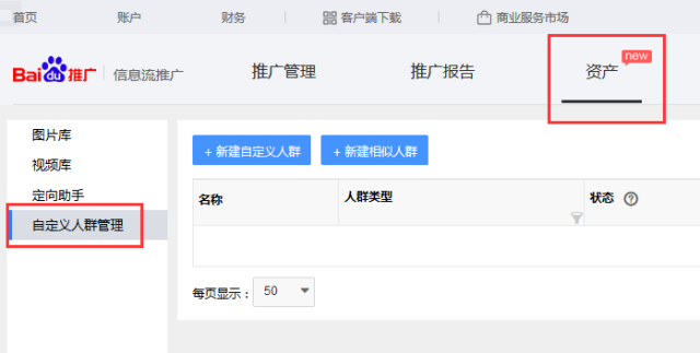 [计划-命名;创意-品牌名称] 3.上传更新账户报错 百度客户端导入其他账户备份文件,设置完成直接上传更新的时候,经常会遇见提示「账户发布失败」的情况,没事,多上传几次即可。 设置单元定向 0.历史销售数据和人群包 在业务分析中,最有参考价值的就是投放产品的历史销售数据(线上线下皆可),哪些地区、媒体、素材转化更好?有没有已经沉淀的人群信息?如果有,可以试试能不能申请开通人群包(网页客户端——资产——自定义人群管理),以我个人的经验,转化会更好。如果没有,根据人群画像设置即可。