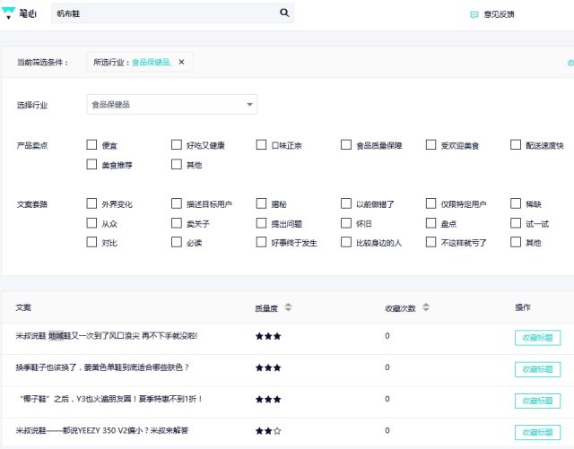 [素材存档 2.写文案 文案怎么写是大课,好文案都是钱磨出来的,但秉承快速上计划的原则,我推荐百度自带的「笔心创意引擎」(网页客户端——推广管理——Feed创意工具),直接搜索产品词,系统会罗列优质文案给你挑,还有什么比照抄更快的吗?