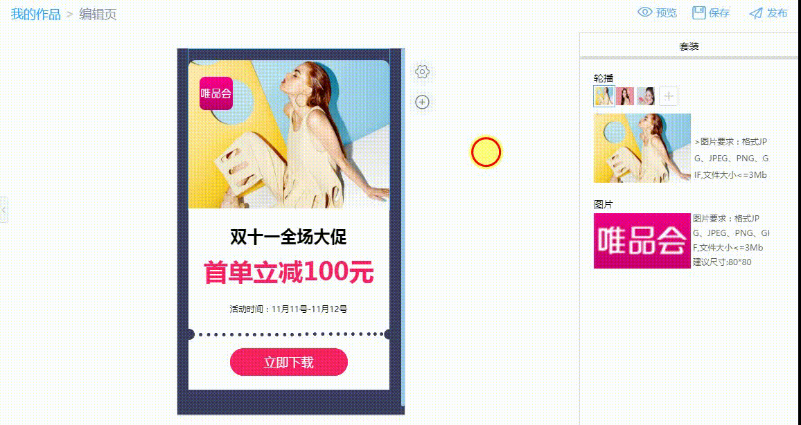 一键更改全局颜色 PS:轮播套装支持上传多张、多格式图片哦,在编辑区红框区域拖拽图片即可调整图片位置,另外,所有的 富文本 也添加了“色板”,灵活运用,为落地页增添别样色彩( &b广告 电视ull; ω • )✧