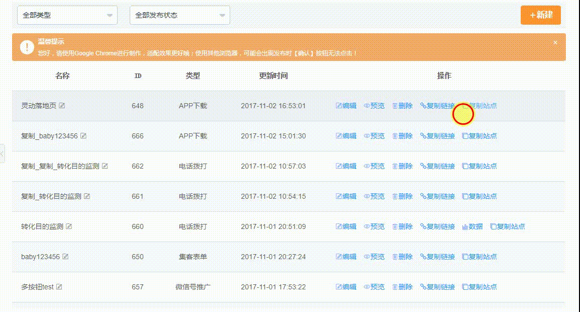 除颜色外,文本还可以调整大小、粗细、字段位置等,套装库中还有多种段落、标题套装可供选择 Tip 2:快速投放,时间即金钱 在面向目标人群的情况下,投放的次数越多,范围越广,落地页的存在感可能就更高。这种情况下,制作时间与制作精力投入得越少,效率也就越高。可能会有这样的情况——落地页制作完成后有部分审核不通过需要修改,或者应对不同的投放需求需要对落地页进行部分改动。但是每次改动都要重新制作一个新的落地页时间和精力的成本太大。针对这种需求,【灵动·落地页】推出了“复制站点”功能,一键复制,为您节省更多的时间