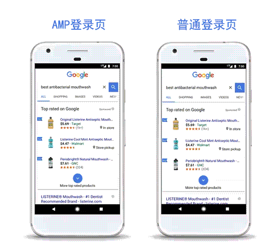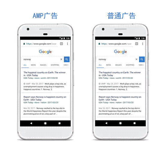 用户使用Google进行搜索,点击自己感兴趣的搜索结果,使用AMP技术的登录页加载速度还不到1秒——页面信息“唰”一下就瞬间显示在你的手机屏幕上,访问者定会爱上这种极速送达信息的感觉。不仅如此,页面加载速度、客户体验都会影响谷歌搜索排名,使用AMP将有效提升广告排名、提升广告质量得分、降低每次点击成本。