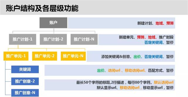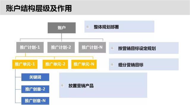 随着互联网的快速发展,相信大家对互联网广告的模式并不陌生了,但是伴随着产品的多元化和信息的大爆炸,无论我们是中的小白还是老司机,难免会陷入如何做好搜索推广带来更多转化的困局中,当我们企业陷入这样的困局之后,又如何走出来呢? “优化”对于我们企业主来说,到底优化什么,又要如何的去优化,首先找到问题的根源从源头出发。的推广根源就是账户结构,账户结构搭建的合理还是不合理都将会对我们后期的推广效果产生巨大的影响。同时账户结构也会帮助我们将关键词和创意发挥最大的作用。 账户结构 1. 账户结构是危机公关通俗的讲是什么企业在百度推广平台中对关键词、创意的分类管理,搜索推广的账户结构由账户、推广计划、推广单元和关键词及创意四个层级构成。
