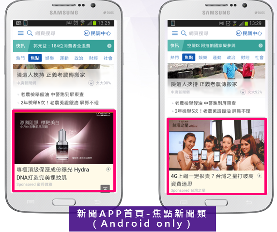 这篇文章小编就只和大家分享Yahoo奇摩行动APP广告位置,话不多话,我们即刻开始。 Yahoo奇摩行动APP广告主要包括新闻APP、气象APP和电子信息APP三大部分。接下来,我们一一细说。 1、Yahoo奇摩新闻APP Yahoo新闻APP还是新闻类APP下载量前三。 a. 新闻APP首页 广告位置是在第三的位置,继续在7则以后就会出现一则原生广告,3,10,17以此类推。(广告位会根据国外测试进行优化调整)