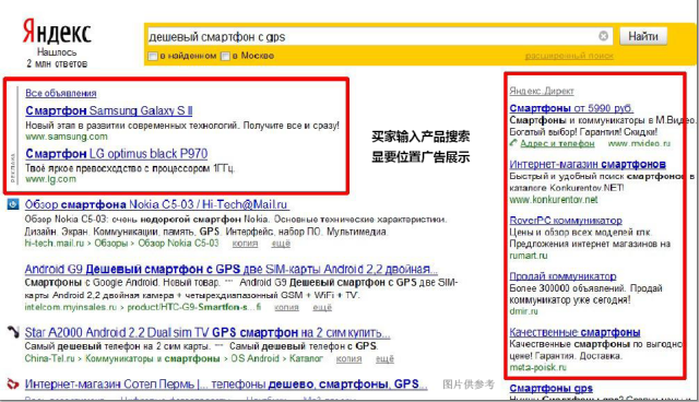 在前面的文章我们说过Yandex在俄语地区占据了很大的市场份额,很多广告主会问,Yandex推广是什么?Yandex推广怎么做?小编为了替大家解决这个问题,特意为大家汇总整理了这篇文章,希望能对大家有所帮助! Yandex推广主要分为两种:一是Yandex搜索引擎关键字推广,二是俄语搜索关键字推广。温馨提示:无论是做Yandex搜索引擎关键字推广还是俄语搜索关键字推广,建议您都需要有一个俄语网站,如果没有也没关系,我们可以帮您搭建一个俄语网站。 1、Yandex搜索引擎关键字推广 Yandex搜索引擎关键字推广需要广告主进行对广告关键词的设置,当用户进入Yandex主页,并在搜索框内输入广告主设置的关键词以后,搜索框下方就会出现广告主所需要投放的广告了,广告主对关键字的设置还需要经过环球市场审核,做Yandex搜索引擎关键字推广,广告会在搜索框下方和页面右侧都会有广告位置。(广告位置如下图)