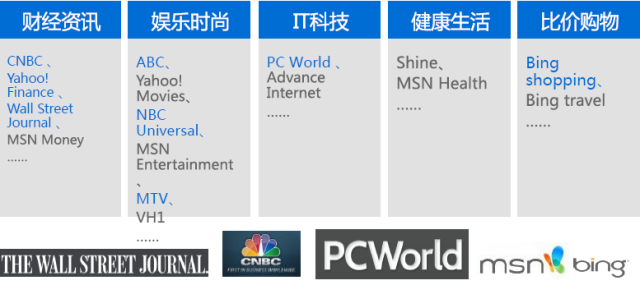 接下来,给大家介绍下和雅虎+必应媒体网站联盟主要合作的网站媒体。(如下图)