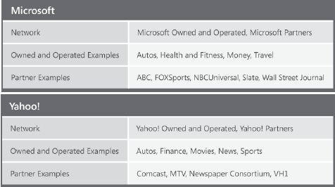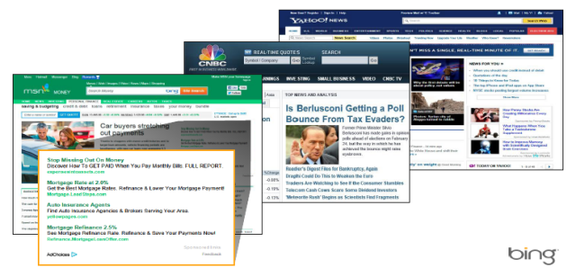 广告主可以在雅虎+必应媒体网站联盟上投放内容广告,内容广告就是指展示在微软和雅虎自由网站及合作伙伴网站上的文本广告,广告位置如图。