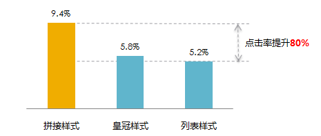智能拼接 智能拼接是将列表样式和皇冠、普通创意等进行灵活拼接,无需广告主重新编写物料,仅需推广组内有生效的列表创意,就可以生成全新的拼接样式。在搜索结果第一位展现。