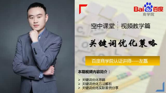 大家好,欢迎来到百度商学院空中课堂。“空中课堂”栏目是专为客户打造的专属交流学习平台。推文、语音、直播、视频等多种形式,希望给大家带来全新的学习体验。 近期很多朋友提到,想学习关于效果提升的课程。众所周知,推广效果与很多因素有关系,比如:关键词的选择,关键词的分类,关键词的优化,网站的布局,落地页的选择等。在提问中,大家普遍对关键词的优化策略持有最多的疑问,那么今天就给大家带来课程《效果提升之关键词优化策略》。