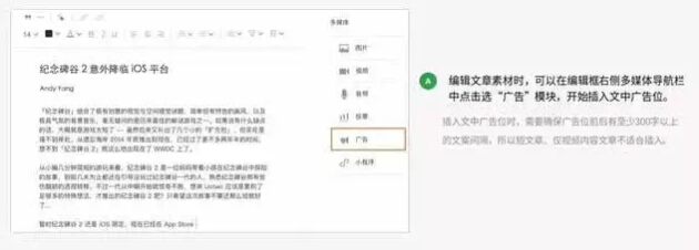 继朋友圈和公众号底部广告之后,微信又新出一歀信息流广告新样式:文内图文广告。具体的位置由流量主编辑文章时设置,相比底部广告,这一功能无论是对流量主还是京东危机公关策略广告主,都相对人性化,就问你惊不惊喜?意不意外? 但是,作为读者来说,用户体验就稍有影响了,不过微信作为这么care用户体验的资源方,决定走这一步,一定是非常小程序完整源码周全和慎重的。 目前只是在电商行业进行初步小范围内测,接下来,就跟小编一起来看看这个“想插就插”的广告位吧!
