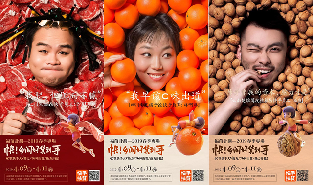 这一最大线上农产集市,来自快手「福苗计划」2019春季专场,活动中共有16万+名建档立卡贫困人口收入增加。 今时今日,如果你依然觉得快手只是个短视频平台,而不去了解和分析快手的最新动作,那你可能会错过很多——曾经,他是媒体笔下展示中国农村残酷底层物语的视频软件。可短短2、3年时间,他就摇身变成中国最能带货的超级平台之一,在越来越强调结果的营销圈,这本身就是个奇迹。而切入点正是那些来自“乡间的好货”。 网上有这么一组数据:在中国约有3000个县城,接近70万个乡村。他们永远不会成为下一个北京、下一个上海,不会成为商业中心,甚至你我这一生都不太可能有机会去到那里,但这不代表你和他没有交集。 当粘豆包、辣椒酱、藜麦、热干面、烤核桃成为这次快手「福苗计划」春季专场里下单最多的产品;当山西平顺县小米党参粥包和云南永胜三川火腿一日内便清仓。一切都有了新的视角。 快手的做法有可能让三四五线市场大量产品的市场化进程加快二十年。这些产品本身并不差,但卖的人不明白渠道,不懂市场营销,对带货一词闻所未闻,甚至连互联网也甚少接触。他们需要的是机会。 乌兰县的农户魏大哥之前靠4亩小麦为生,年收入只有五六千块。2016年种了藜麦,年收入增加到2万多块,通过现实版的“藜麦进城记”实现了脱贫。这样的例子在偏远的青海柴达木盆地乌兰县还有3600多个。而爆款山货藜麦甚至化身美味沙拉,送往遥远的三亚市吉阳区,这中间的距离足足有3381公里——过去,他们的东西根本卖不出去,种的越多死的越快,通过快手的「福苗计划」,这些变成了现实。 而另一边,身处一二线城市的人们,也对这些稀奇古怪的好物有着浓厚兴趣。 天津人最喜欢在深夜下单 山东人和江苏人在下单排行榜中排名第二第三 最爱买辣条的居然是广东人 山西人竟然是最注重养生,最偏爱养生的人群 这是一个关于供需的平衡,当两边都存在巨大需求时,机会便真正到来。而快手做的则是一件真正可以实现的关于“品效合一”的事:通过短视频直播+电商,实现扶贫的新路径。 显然,这是平台的价值。而为了把这次「福苗计划」做的更好,快手也展现了更多玩法。 一个带货的campaign,到底是怎么做出来的? 1、3天,97个大V,76款好货,475场直播 互联网本就是一个人声鼎沸的大广场,何况是记录人生百态的快手平台,要想让更多人听到并记住,就需要用最直接的方式喊出去,如果有个大喇叭那就更好了。这便是大V的价值。 为了最大限度扩大声量,在线上,快手邀请了97位平台大V在活动期间通过图片、短视频、直播等方式直接推广包括黑龙江糯玉米、河北怀安贡米、内蒙古兴安盟牛肉干在内的76款来自贫困地区的优质食品。 近百位大V变身「直播间里的扶贫能手」,用前后475场直播迅速放大着影响力。这是规模化的互联网打法,既然单点爆发式的创意可遇不可求,不妨组合打击,这在互联网主导的时代格外重要。而协同化、体系化的思维,也在快手这波扶贫传播中体现无疑。所有人都是项目中的主人公,从主播,到受众,再到卖家,甚至连快手的员工也化身扶农产品代言人,拍摄了一组主题为“好货终须出头日”的创意大片。 2、一组特别的大片