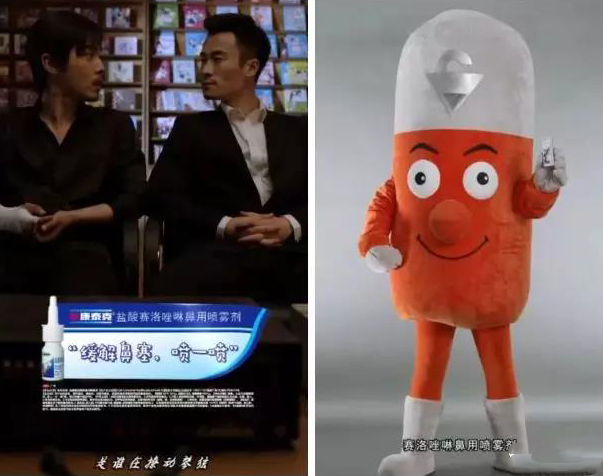品牌特制抱枕、演员背景墙,把能与主演产生强关联和强互动的植入方式统统用上,让观众处处都能看到新康泰克鼻喷。 第三招:品牌IP客串出演,增强品牌互动