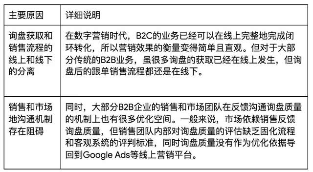 痛点 1 :转化营销广告效果无法衡量 转化或者说询盘的精准追踪一直是困扰 B2B 客户最大问题之一,其主要原因有以下两点: